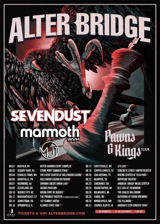 Alter Bridge have announced a headlining North American tour. Sevendust, Mammoth WVH, and MJT will serve as support on select dates.