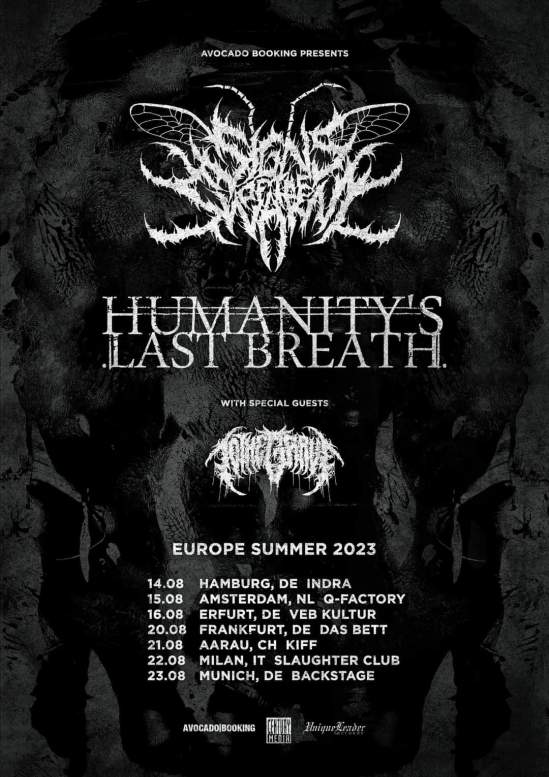 Signs Of The Swarm, Humanity’s Last Breath, and To The Grave have announced an August European tour. Here’s the dates for that run:
