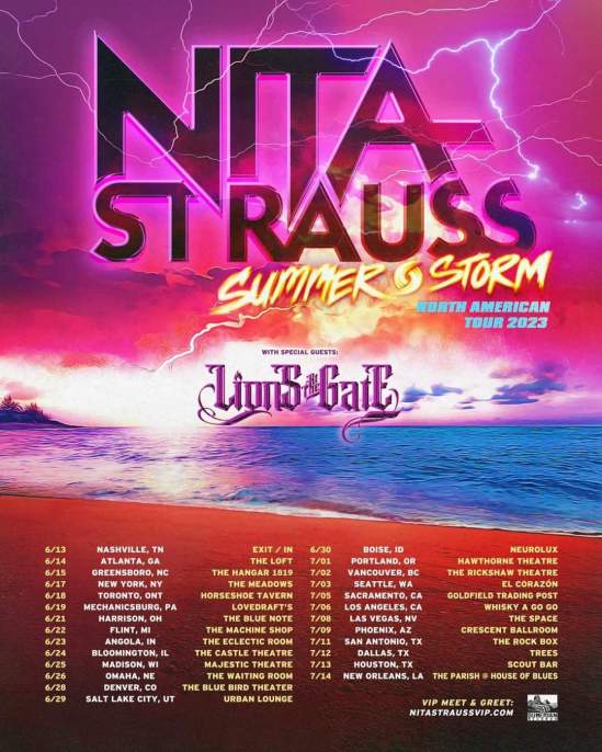 Nita Strauss (Alice Cooper, etc.) has announced a headlining North American tour. Lions At The Gate (ex-Ill Niño, etc.) will serve as support.