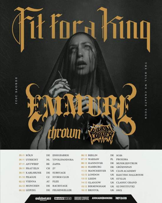 Fit For A King have announced a headlining European/UK tour. Emmure, Thrown, and The Gloom In The Corner will serve as support.