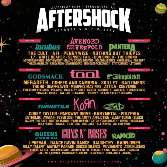 There has been some changes made to this year’s Aftershock Festival. The event will take place at Discovery Park in Sacramento, CA on October 5-8 and the updated lineup can be found below: