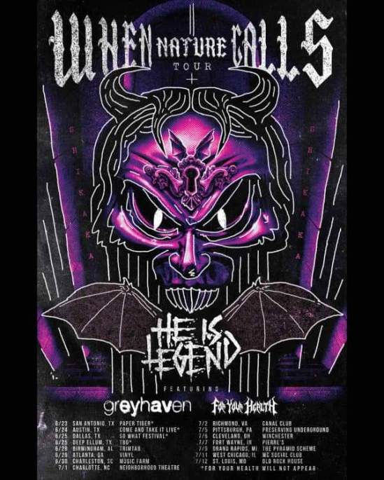 He Is Legend have announced a summer headlining tour. Greyhaven and For Your Health will open.