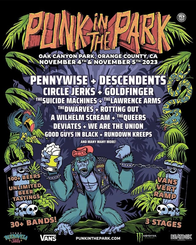 The lineup has been revealed for this year’s Punk In The Park festival. The event will take place at Oak Canyon Park in Orange County, CA on November 4-5 and it will feature: Pennywise, Descendents, Circle Jerks, Goldfinger, The Suicide Machines, The Lawrence Arms, The Dwarves, Rotting Out, A Wilhelm Scream, The Queers, Deviates, We Are The Union, Good Guys In Black, and Rundown Kreeps. Notably the festival will also include a Vans Vert Ramp with pro skaters and unlimited tastings of over 100 craft beers and other craft beverages.