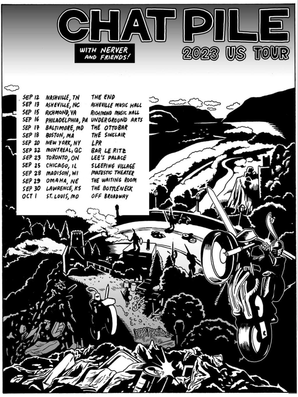 Chat Pile have announced a North American tour with Nerver. The Holy Ghost Tabernacle Choir, Empire State Bastard, Intercourse, Nightosphere, and Urine Hell will also perform on select dates.