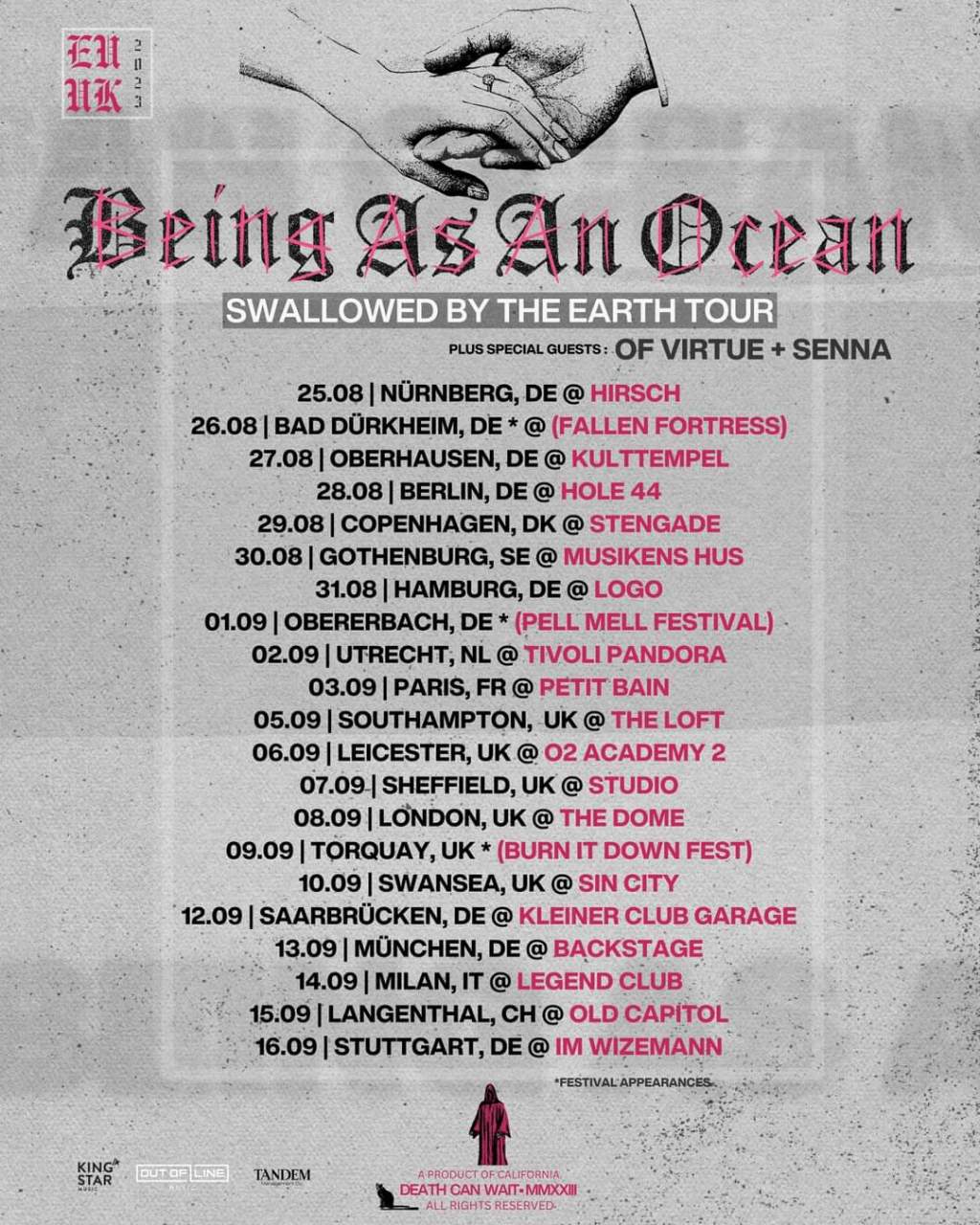 Being As An Ocean have announced a headlining European/UK tour. Of Virtue and Senna will open.