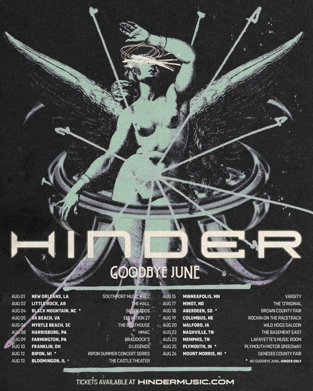 Hinder have announced a headlining U.S. tour. Goodbye June will open.