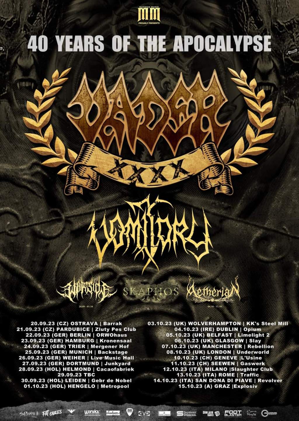 Vader have announced a 40th anniversary European/UK tour with Vomitory and Skaphos. Warside and Aetherian will also be joining the trek on select dates.