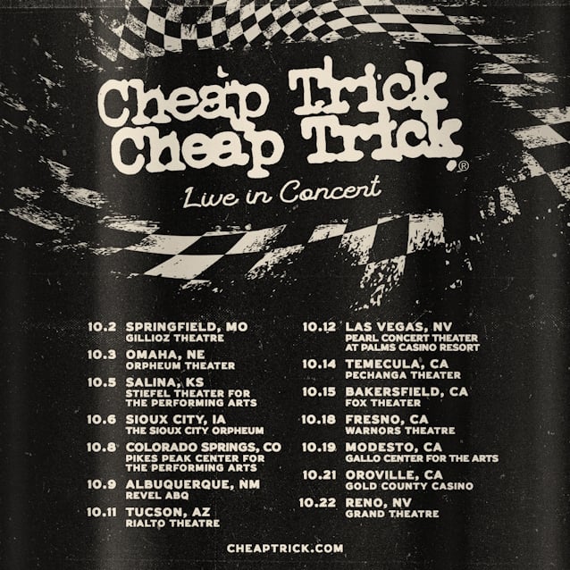 Cheap Trick have announced a headlining U.S. tour. The trek will take place in October.