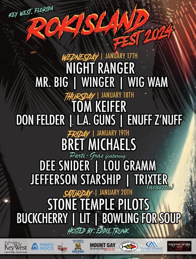 The lineup has been revealed for next year’s RokIsland Fest. The event will take place in Key West, FL on January 17-20 and it will feature the following: