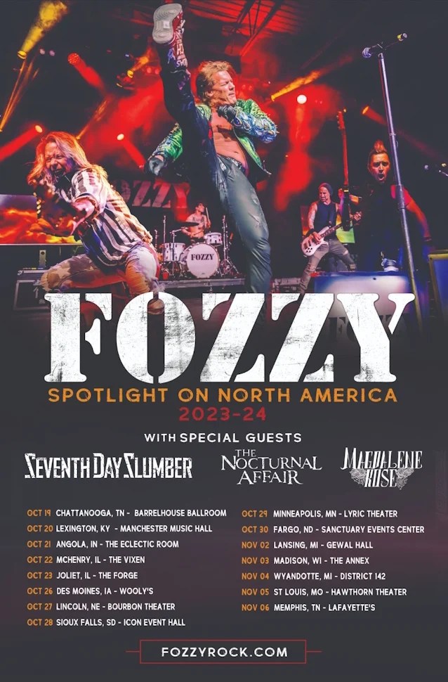 “We are beyond excited to put the Fozzy spotlight back in the USA this fall! After headlining our biggest U.K. show ever in August, we are ready to keep the party machine rolling throughout America in October and November! With a brand new song, a brand new setlist, and the same Fozzy energy and attitude that you know and love, we fully expect this to be the perfect way to ring out your rock ‘n’ roll year…with the most exciting show and tour of 2023! So get ready to share the spotlight with Fozzy!”