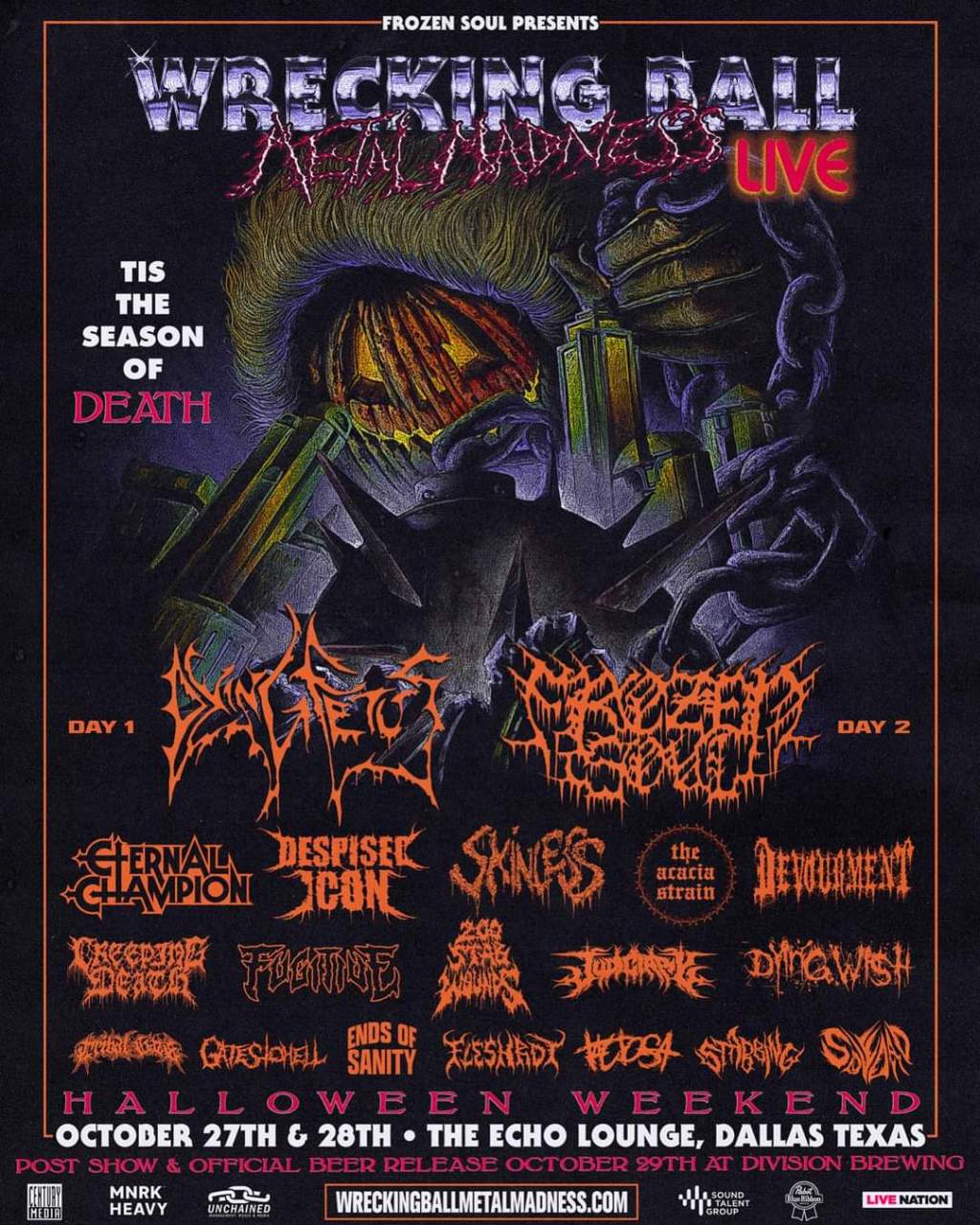 The lineup has been revealed for this year’s Wrecking Ball Metal Madness festival. The event will take place at The Echo in Dallas, TX on October 27-28 and it will feature the following: