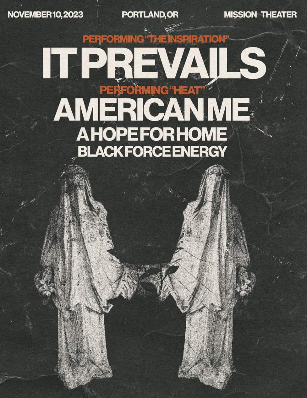 It Prevails and American Me will be performing at the Mission Theater in Portland, OR on November 10. The concert will find It Prevails performing “The Inspiration” in full and American Me performing “Heat” in full. A Hope For Home and Black Force Energy will open.
