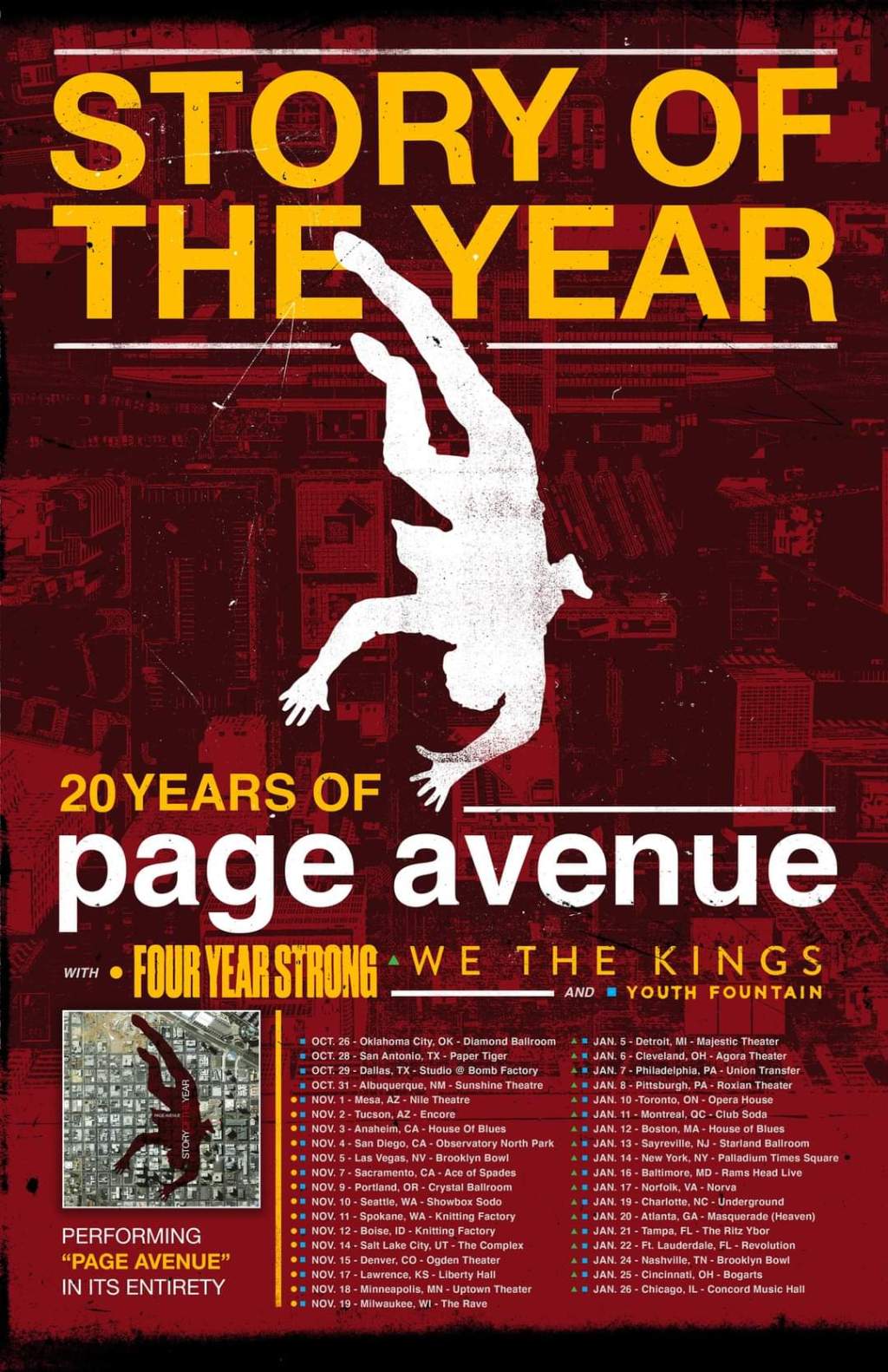 Story Of The Year will be celebrating the 20th anniversary of “Page Avenue” by performing it in full on a fall/winter North American tour. Four Year Strong (select dates), We The Kings (select dates), and Youth Fountain will serve as support.