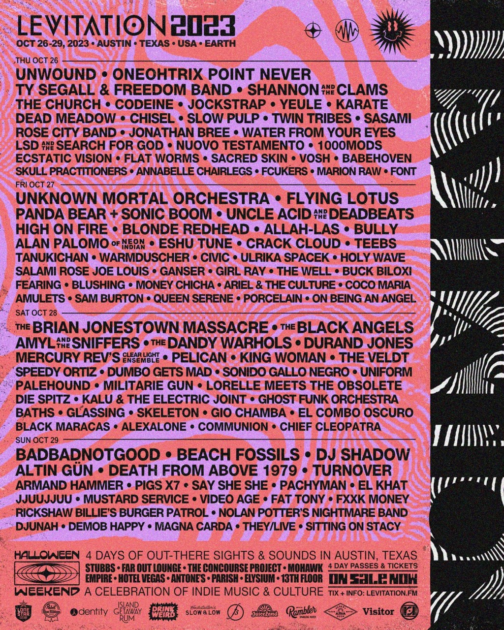Pelican, King Woman, Uniform, Glassing, Skeleton, Communion, and more have been added to this year’s Levitation festival. The event will take place in Austin, TX on October 26-29 and the updated lineup can be found in the below poster: