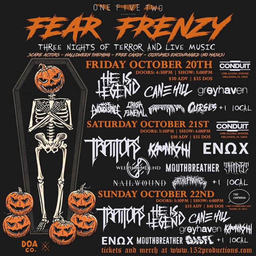 The details have been revealed for this year’s “Fear Frenzy” shows in Florida. Here’s the dates and lineups for those concerts: