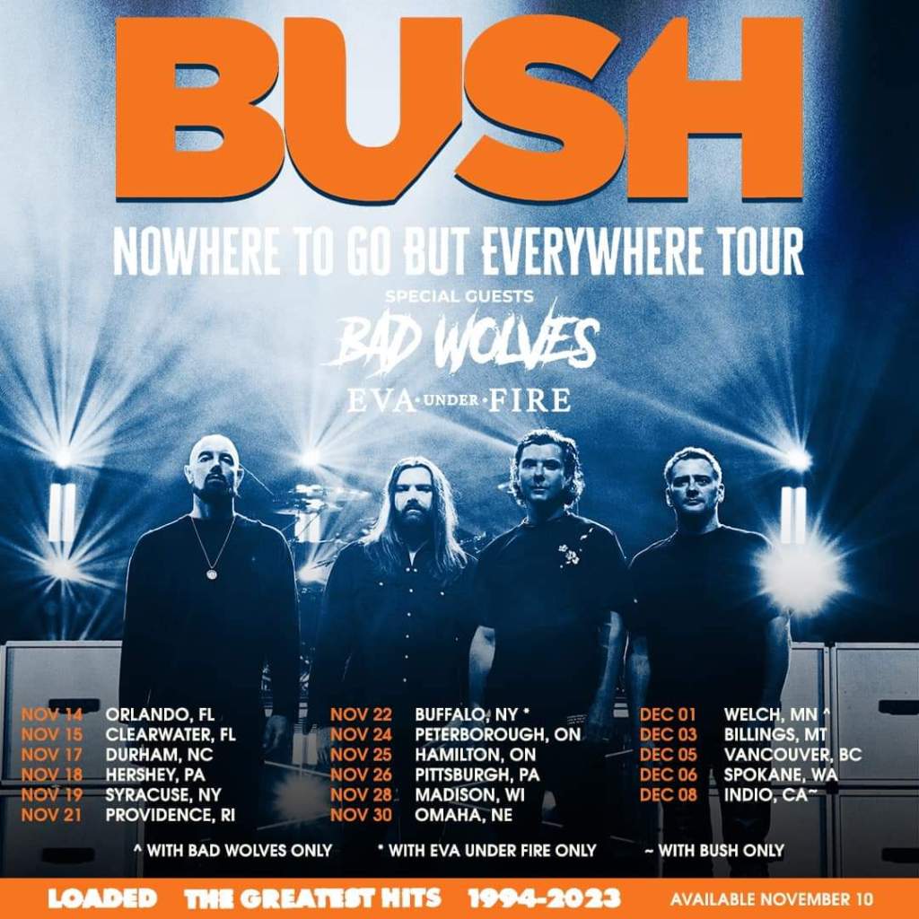 Bush have announced a North American tour with Bad Wolves and Eva Under Fire. The band will be touring in support of their new greatest hits compilation, “Loaded: The Greatest Hits 1994-2023,” which is set to be released on November 10.