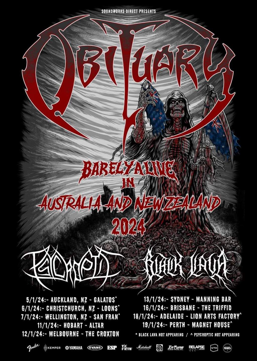 Obituary have announced an Australian/New Zealand tour with Psycroptic and Black Lava. Here’s the dates: