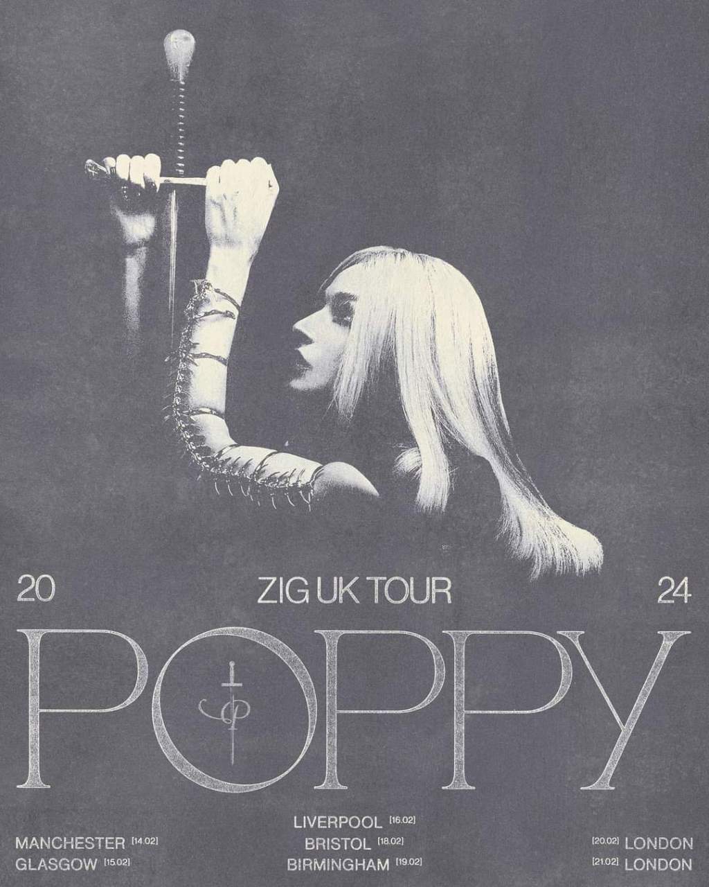 Poppy has announced a February 2024 UK tour. The trek will follow her European tour with Bad Omens. Here’s the dates: