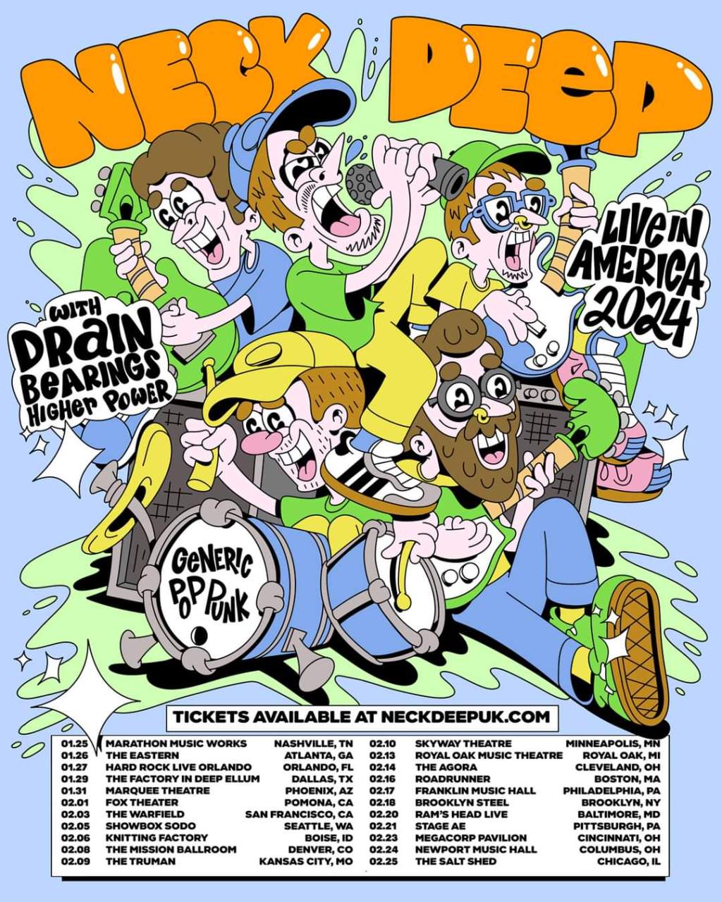 Neck Deep have announced a U.S. tour with Drain, Bearings, and Higher Power. The band will be touring in support of their new self-titled album (out January 19).