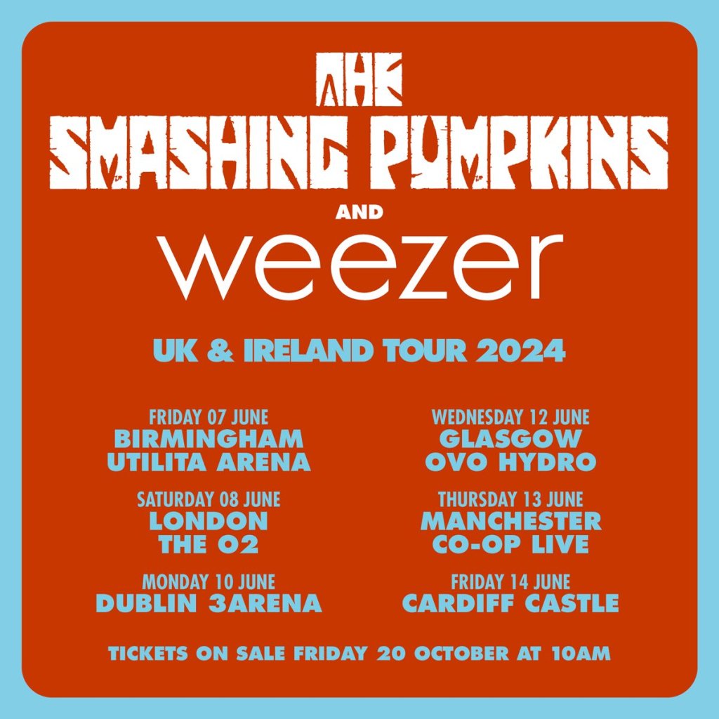 The Smashing Pumpkins and Weezer have announced a June 2024 UK/Ireland tour. Here’s the dates: