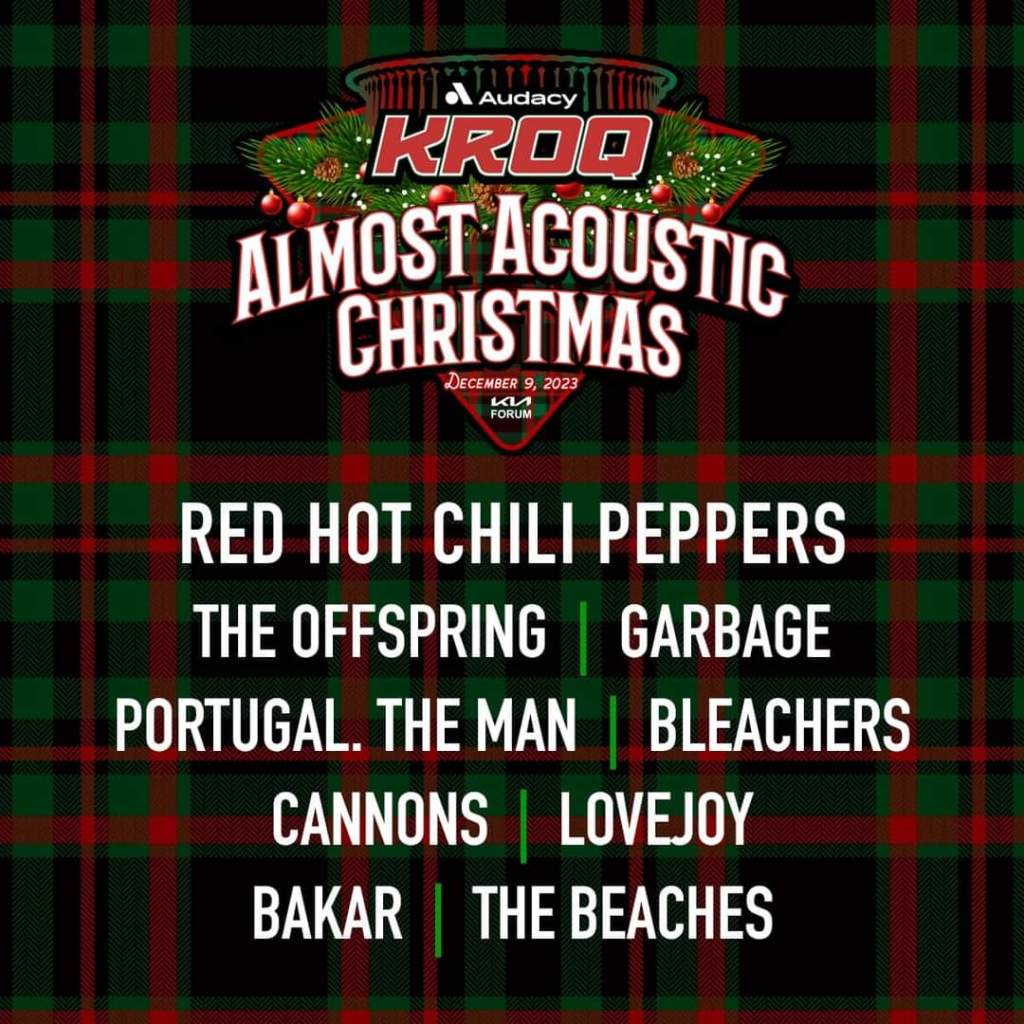 The lineup has been revealed for this year’s edition of “KROQ’s Almost Acoustic Christmas.” The event will take place at the KIA Forum in Los Angeles, CA on December 9 and it will feature: Red Hot Chili Peppers, The Offspring, Garbage, Portugal. The Man, Bleachers, Cannons, Lovejoy, Bakar, and The Beaches.