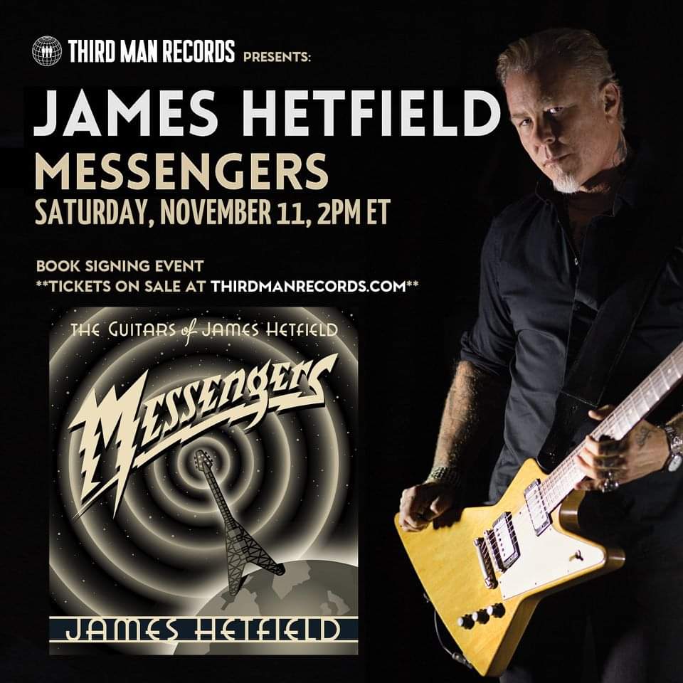 “⚠️ DETROIT ⚠️ If you’ll be in town for #M72Detroit next weekend, you can get your hands on a copy of “Messengers: The Guitars of James Hetfield” ten days before its release AND get it autographed by James himself! All fans attending must have a ticket to enter the event, which includes a copy of the book.”