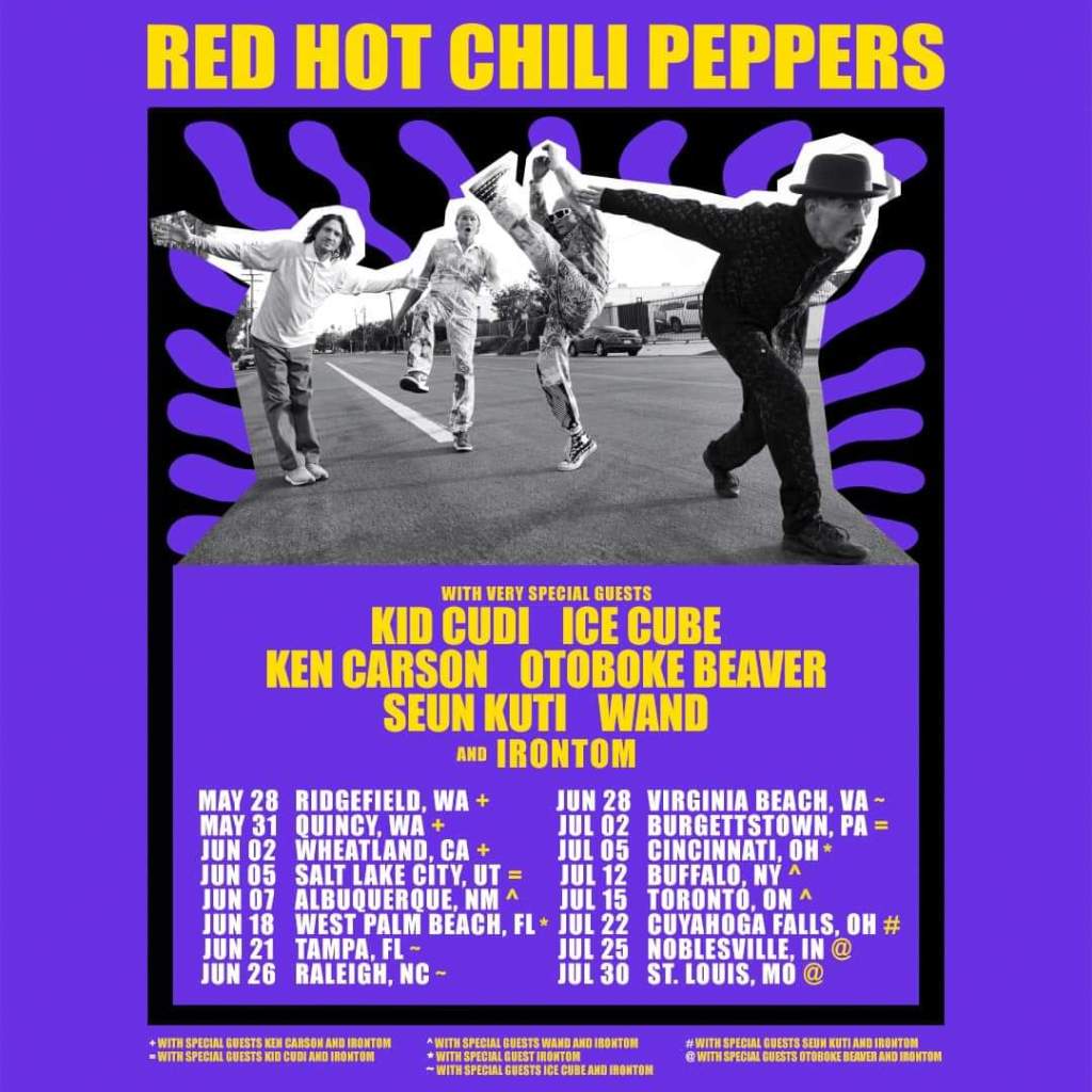 Red Hot Chili Peppers have announced a headlining North American tour. Ice Cube, Kid Cudi, Ken Carson, Otoboke Beaver, Seun Kuti, Wand, and IRONTOM will serve as support on select dates.