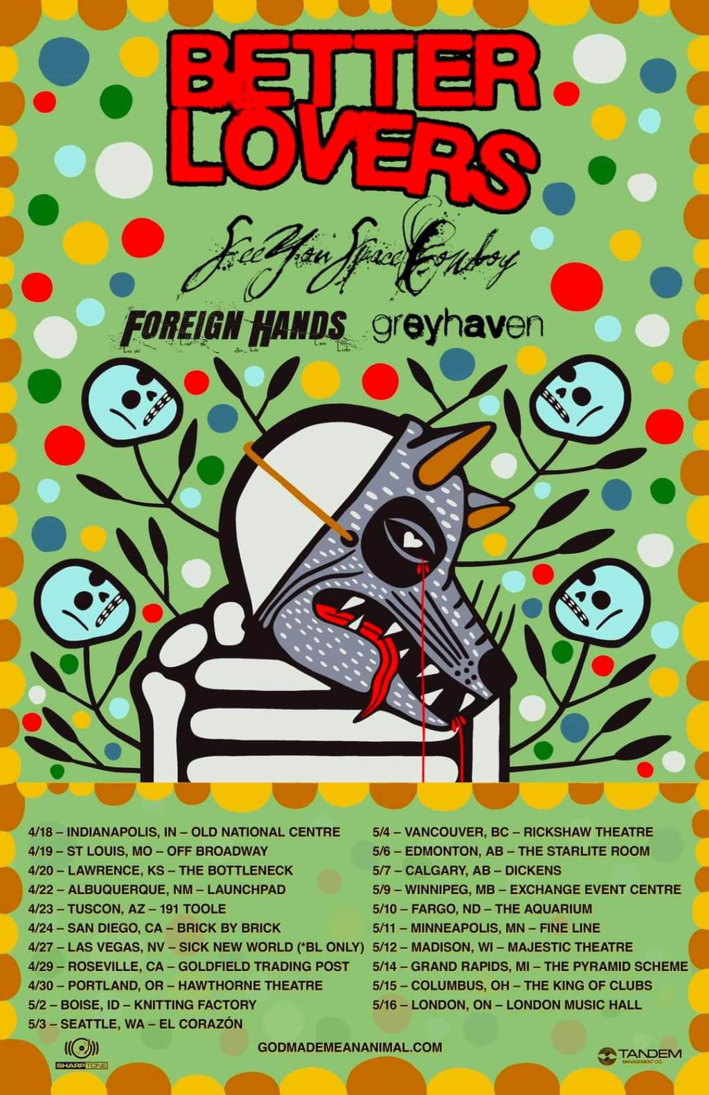 Better Lovers (ex-Every Time I Die, ex-The Dillinger Escape Plan, etc.) have announced a headlining North American tour. SeeYouSpaceCowboy, Foreign Hands, and Greyhaven will serve as support.