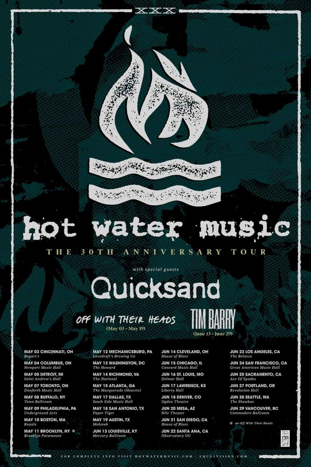 Hot Water Music will be celebrating their 30th anniversary on a North American tour with Quicksand. Off With Their Heads and Tim Barry will also perform on select dates.