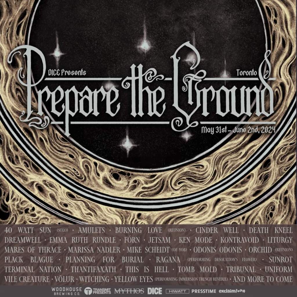 The lineup has been revealed for the Prepare The Ground festival in Toronto, ON. The event will be held across Lee’s Palace, the Phoenix Concert Theatre, The Garrison, Baby G and Bar Orwell on May 31 to June 2 and it will feature: 40 Watt Sun, Amulets, Burning Love, Cinder Well, Death Kneel, Dreamwell, Emma Ruth Rundle, Fórn, Jetsam, KEN mode, Kontravoid, Liturgy, Mares Of Thrace, Marissa Nadler, Mike Scheidt (YOB), Odonis Odonis, Orchid, Plack Blague, Planning For Burial, Ragana (performing “Desolation’s Flower“), Sunrot, Terminal Nation, Thantifaxath, This Is Hell, Tomb Mold, Tribunal, Uniform, Vile Creature, Völur, Witching, and Yellow Eyes (performing “Immersion Trench Reverie“).