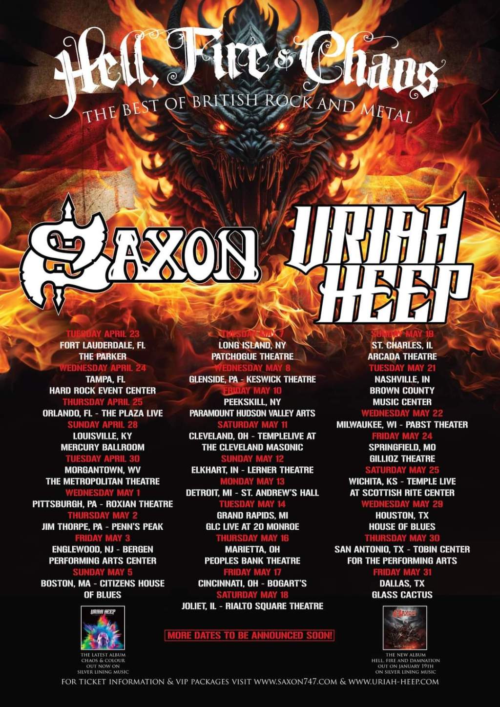 Saxon and Uriah Heep have announced a co-headlining U.S. tour. Both bands will be playing sets of equal length and are planning to rotate the closing slot.