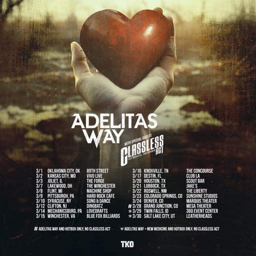 Adelitas Way have announced a March headlining tour. Classless Act will open.