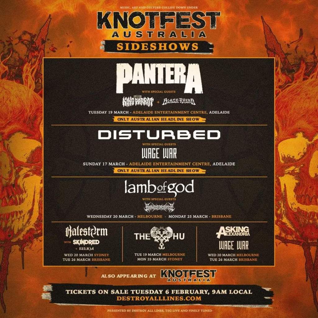 A number of sideshows have been booked around Knotfest Australia. This includes new headlining shows from Pantera, Disturbed, Lamb Of God, etc.