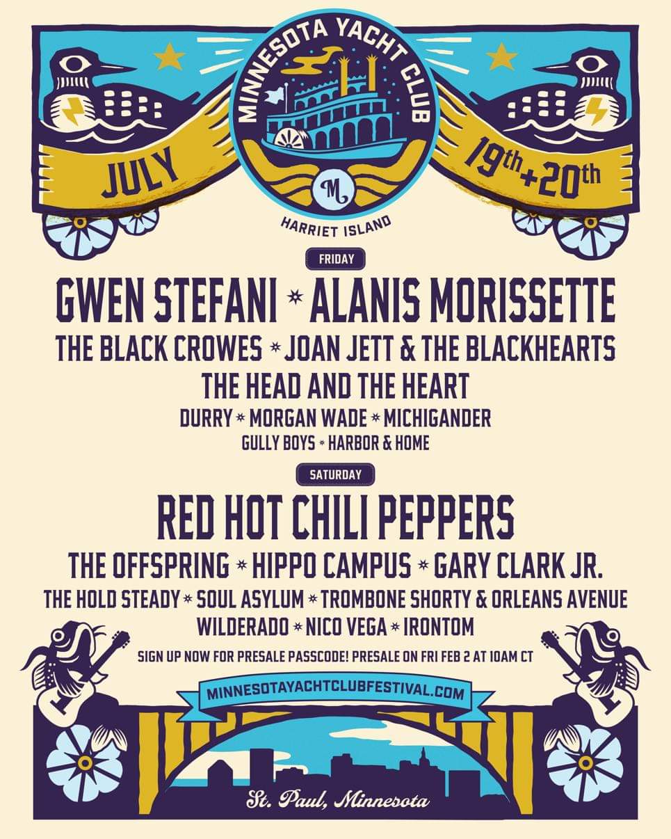 The lineup has been revealed for the first-ever Minnesota Yacht Club Festival. The event will take place at Harriet Island Regional Park in Saint Paul, MN on July 19-20 and it will feature the following:
