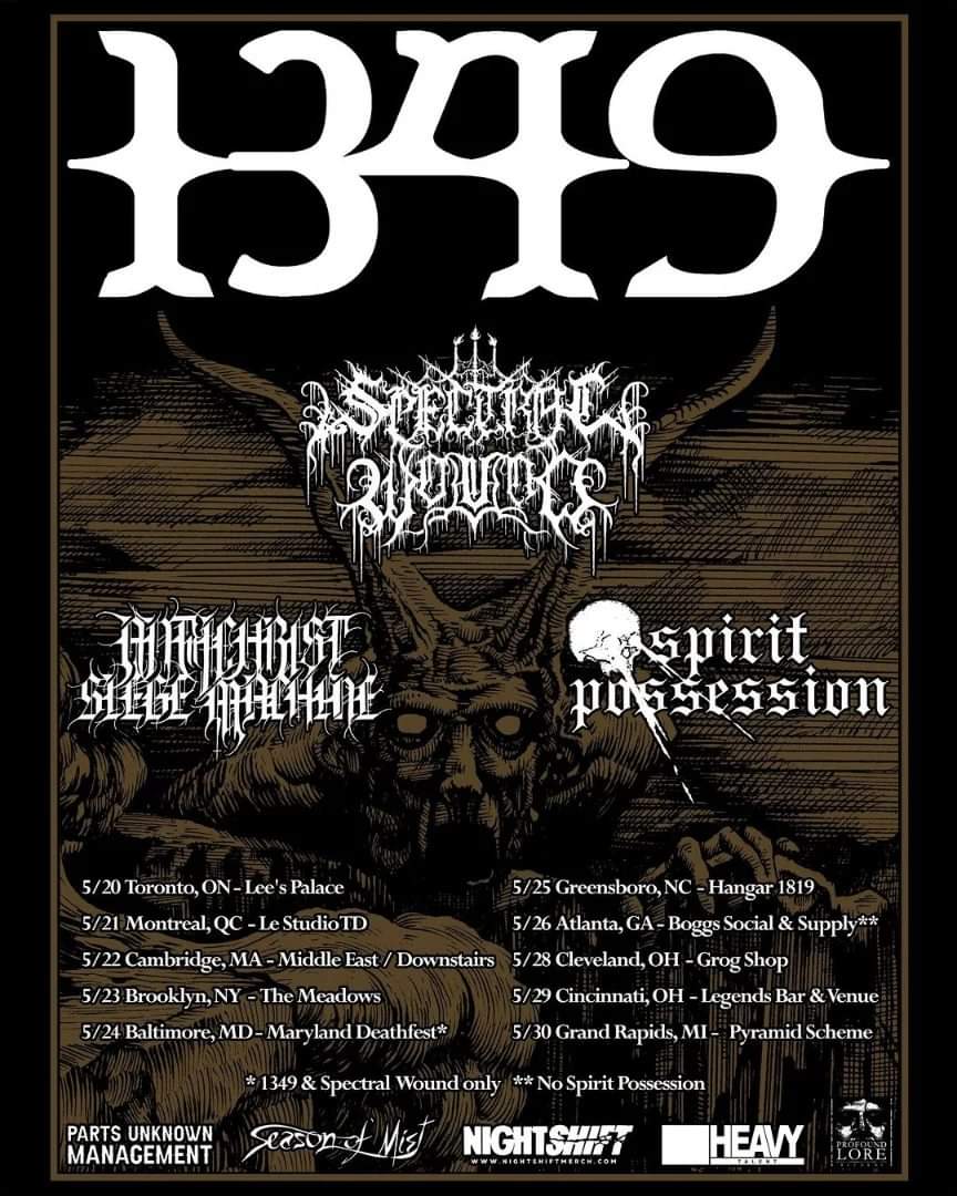 1349 have announced a North American tour with Spectral Wound, Antichrist Siege Machine, and Spirit Possession. Here’s the dates for that run: