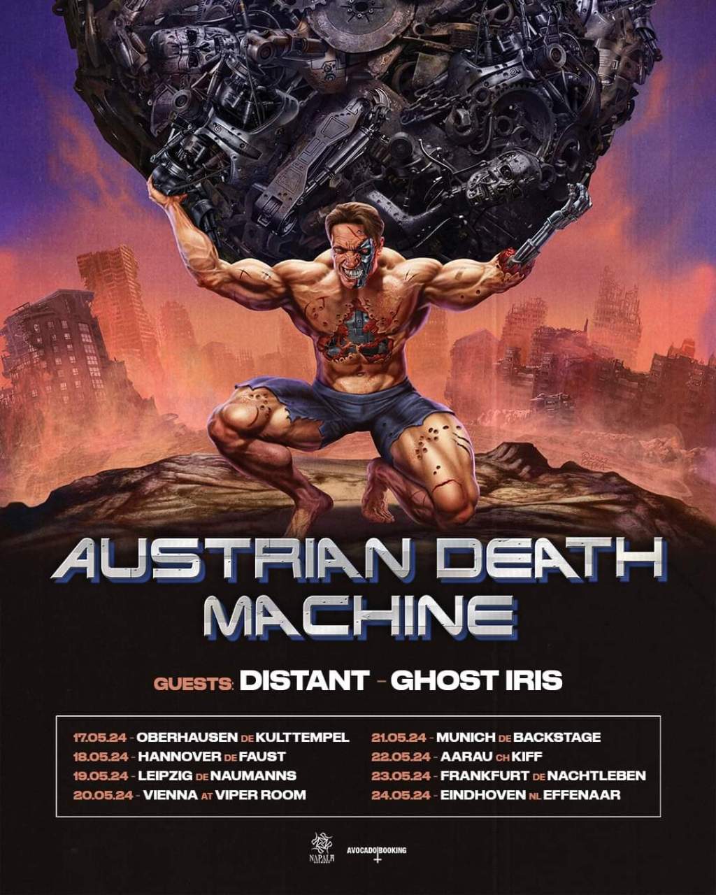 Austrian Death Machine, the Arnold Schwarzenegger-themed project featuring As I Lay Dying’s Tim Lambesis, have announced a May European tour. Distant and Ghost Iris will open. Here’s the dates: