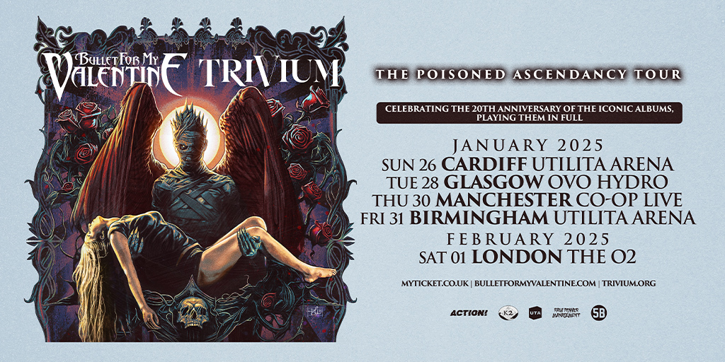 Bullet For My Valentine and Trivium have confirmed that they are planning to celebrate the 20th anniversaries of “The Poison” and “Ascendancy” by performing them in their entireties on a world tour next year. The UK leg has already been announced with the dates available below.