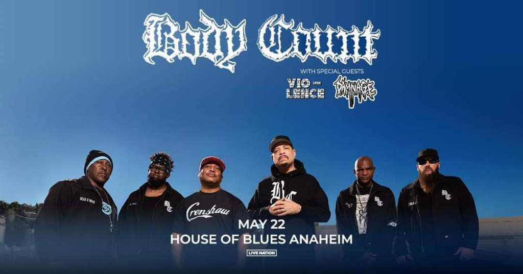 Body Count will be performing at the House Of Blues in Anaheim, CA on May 22. Vio-lence and Damnage will open.