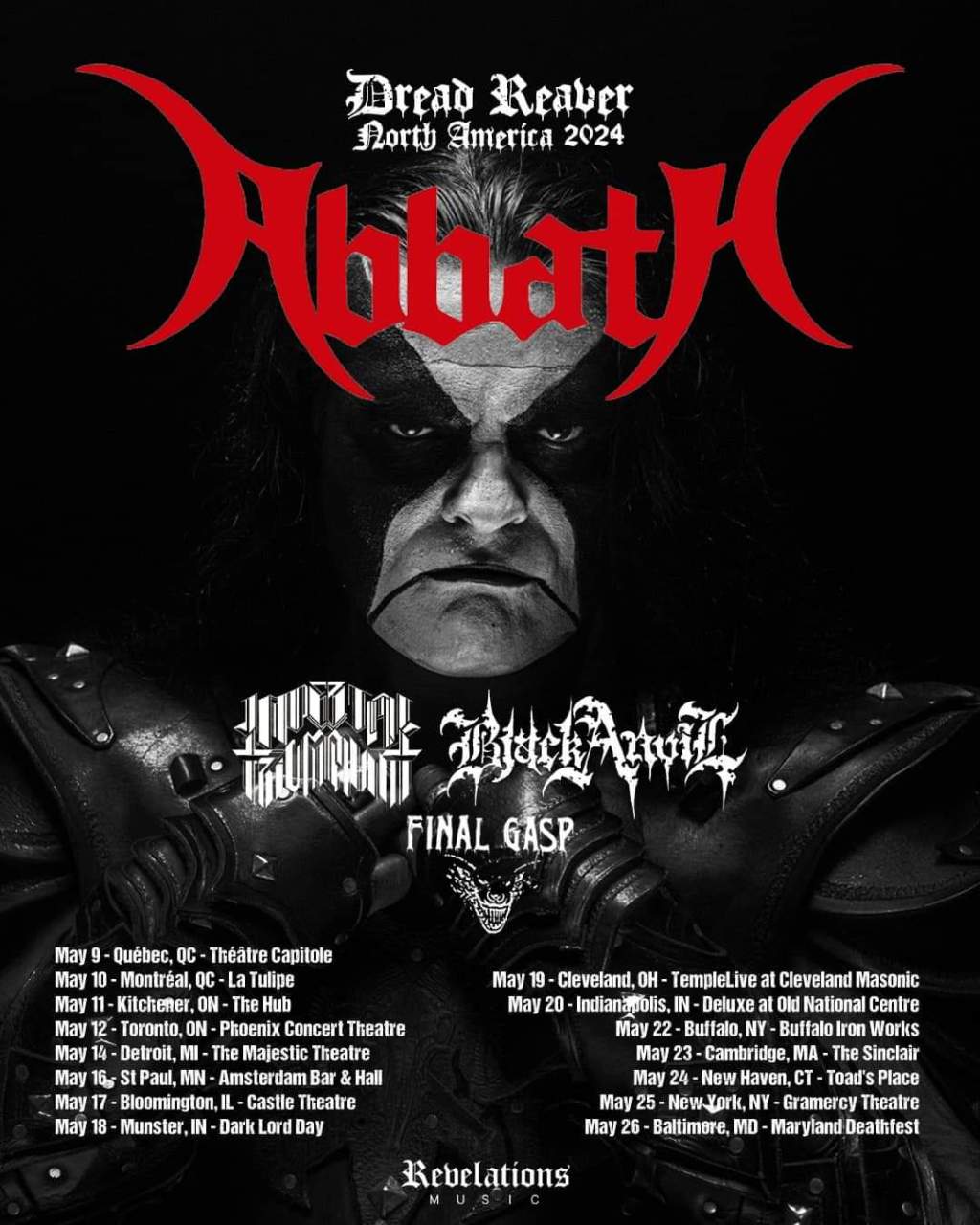 Abbath has announced a North American tour with Imperial Triumphant, Black Anvil, and Final Gasp. Here’s the dates: