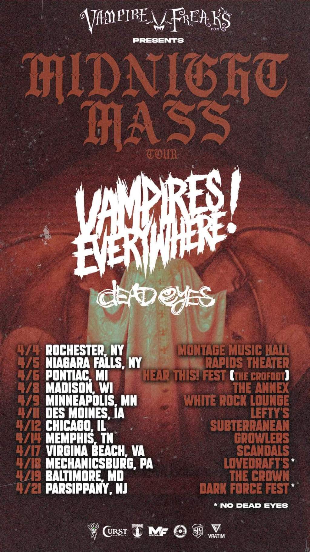 Vampires Everywhere! have announced an April tour with Dead Eyes. Here’s the dates: