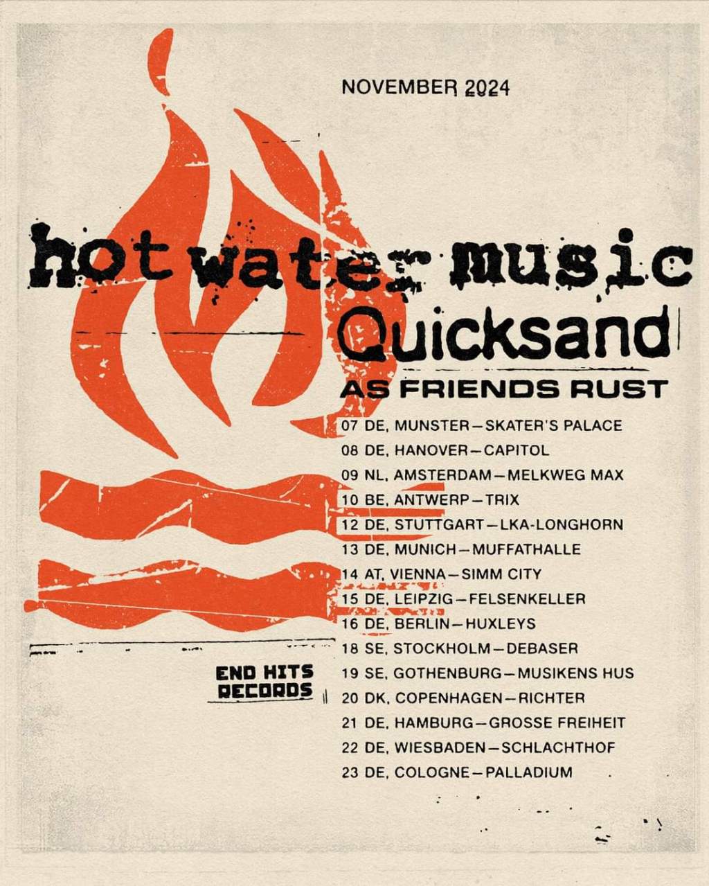 Quicksand and As Friends Rust have been added to Hot Water Music’s November European tour. Here’s the dates: