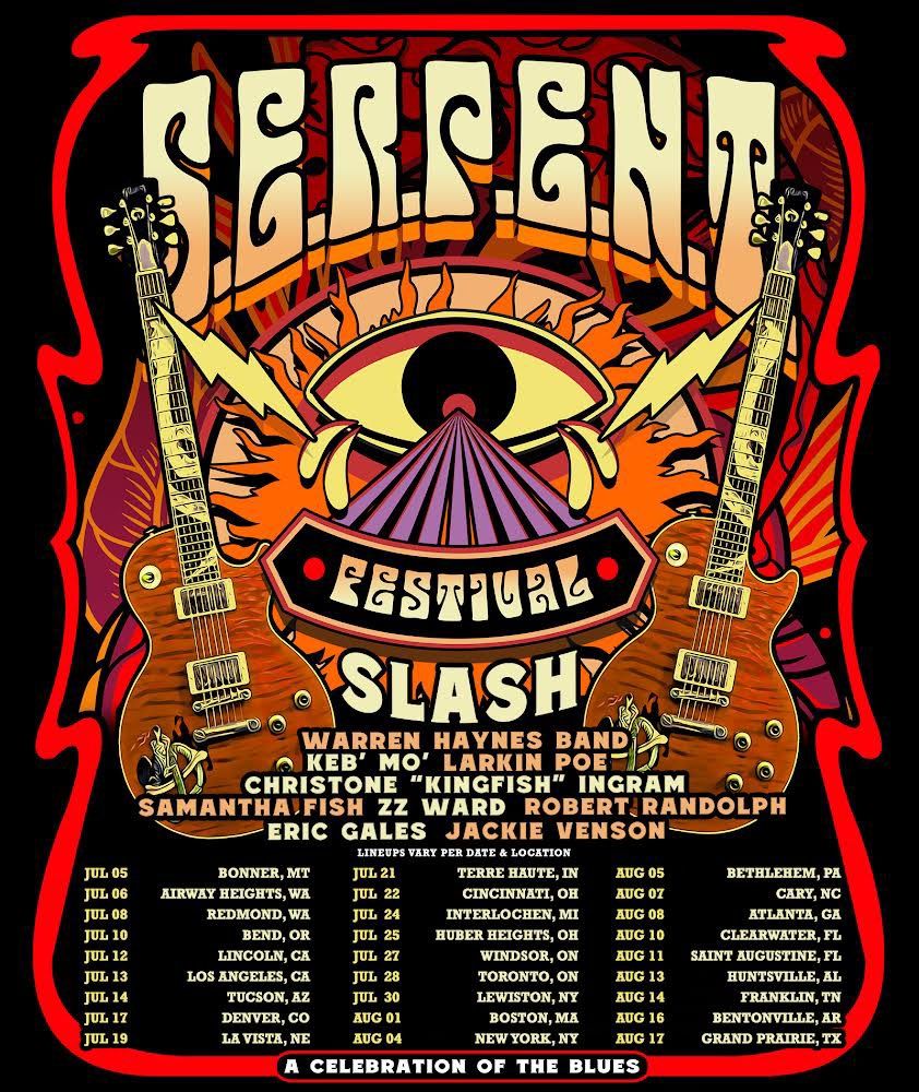 Slash (Guns N’ Roses) has revealed the details for his “S.E.R.P.E.N.T. Festival” tour. The trek will take place this summer and it will find the guitarist joined by the Warren Haynes Band, Keb’ Mo’, Larkin Poe, Christone “Kingfish” Ingram, Samantha Fish, ZZ Ward, Robert Randolph, Eric Gales, and Jackie Venson on select dates. This news closely follows the announcement of Slash’s blues covers album “Orgy Of The Damned,” which will be released on May 17.