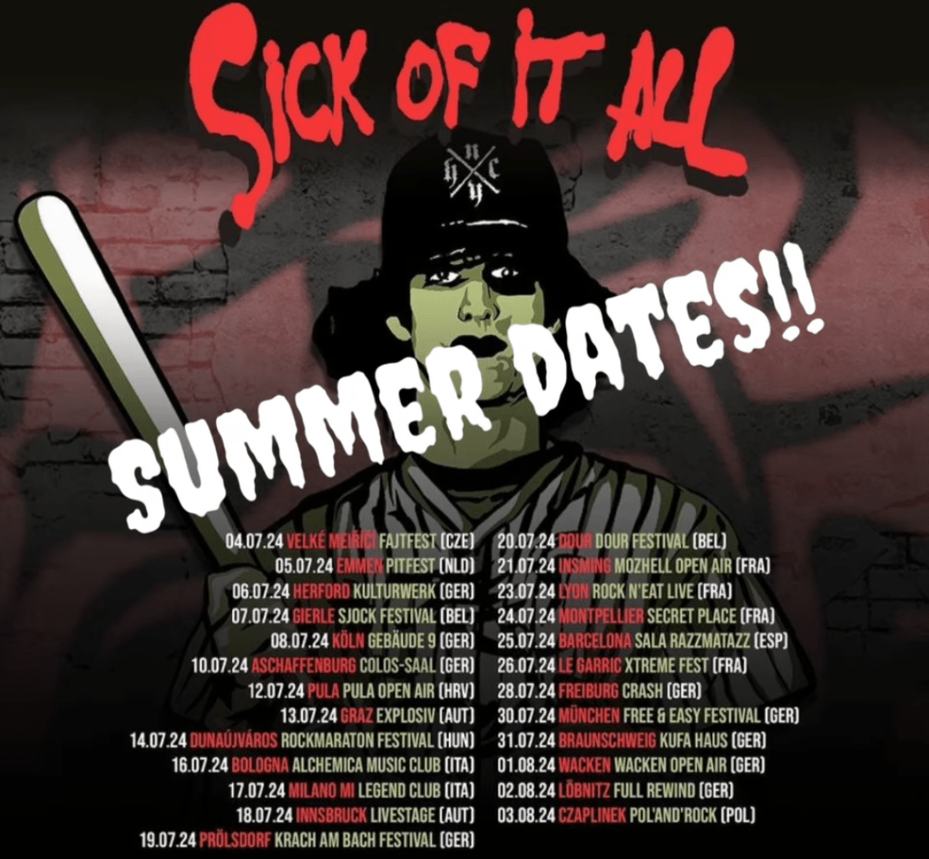 Sick Of It All have announced a summer European tour. You can find the dates for that run below.