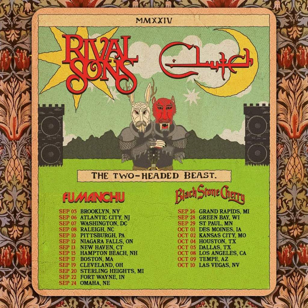 Rival Sons, Clutch, Fu Manchu, and Black Stone Cherry have announced a U.S. tour. The trek will take place this fall.