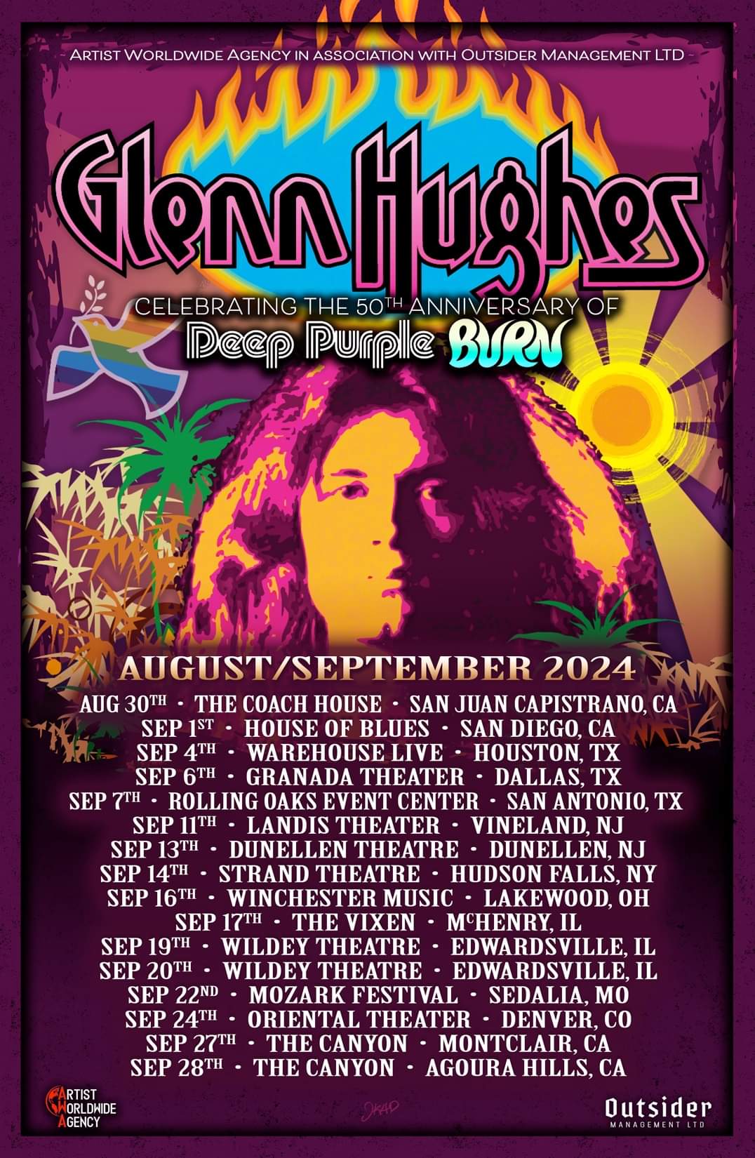 Glenn Hughes will be continuing his 50th anniversary celebration for Deep Purple’s “Burn” on a headlining August/September tour. Here’s the dates: