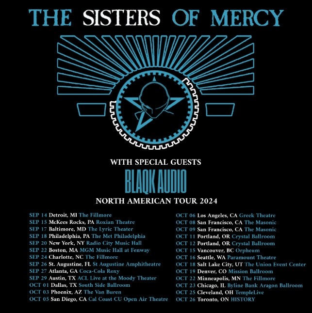 The Sisters Of Mercy have announced a headlining North American tour. Blaqk Audio will open.