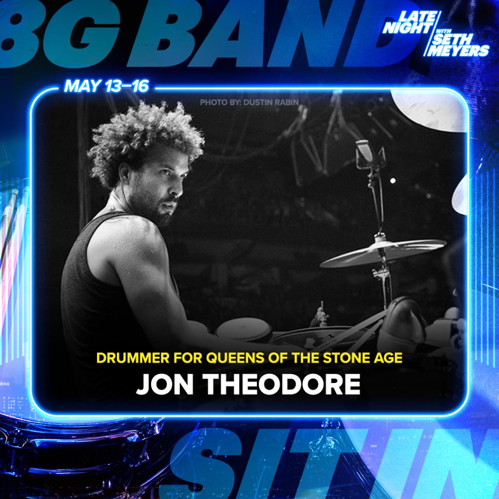 Queens Of The Stone Age’s Jon Theodore is currently sitting in with the 8G Band on “Late Night With Seth Meyers.” You can catch the drummer on May 13-16.