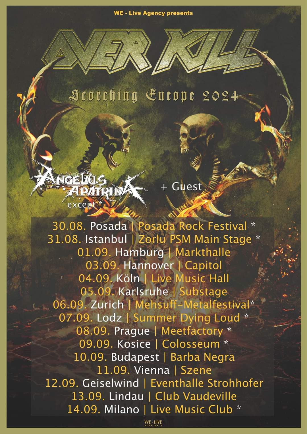 Overkill have announced a late summer European tour. Angelus Apatrida will open on select dates.