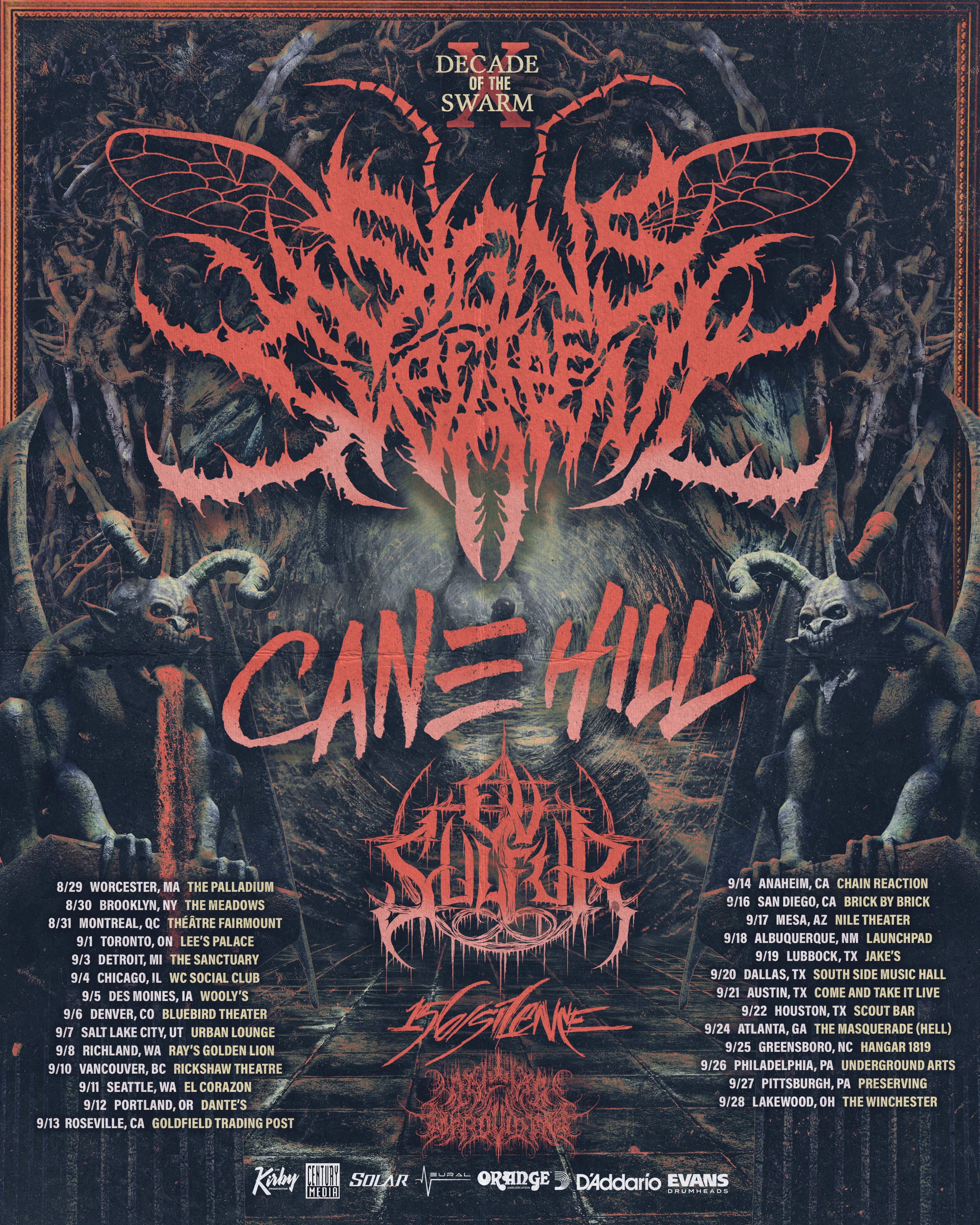 Signs Of The Swarm have announced that they will be celebrating their 10th anniversary on a headlining North American tour. Cane Hill, Ov Sulfur, 156/Silence, and A Wake In Providence will serve as support.