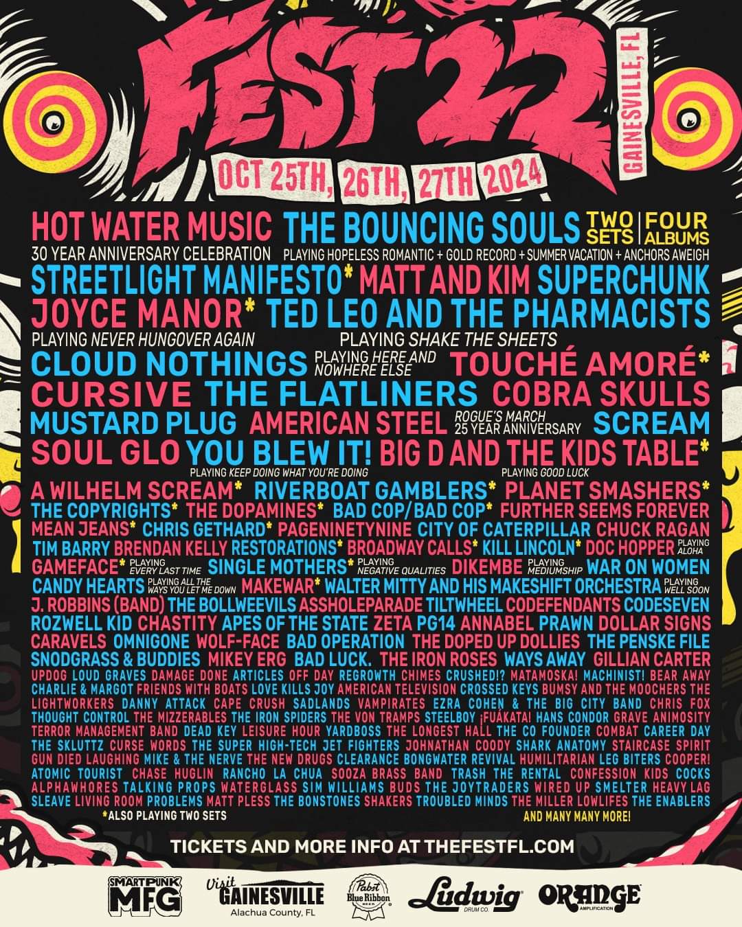More bands have been added to this year’s edition of The Fest. Among them are Touché Amoré, American Steel, Cobra Skulls, Soul Glo, The Bollweevils, Tiltwheel, Annabel, Prawn, Mikey Erg, Gillian Carter, Chuck Ragan And The Camaraderie, War On Women, Chastity, Codefendants, Ways Away, Hans Gruber And The Die Hards, Ceschi, Saturdays At Your Place, and more. The event will be held in Gainesville, FL on October 25-27 and the updated lineup can be found across the three admats below: